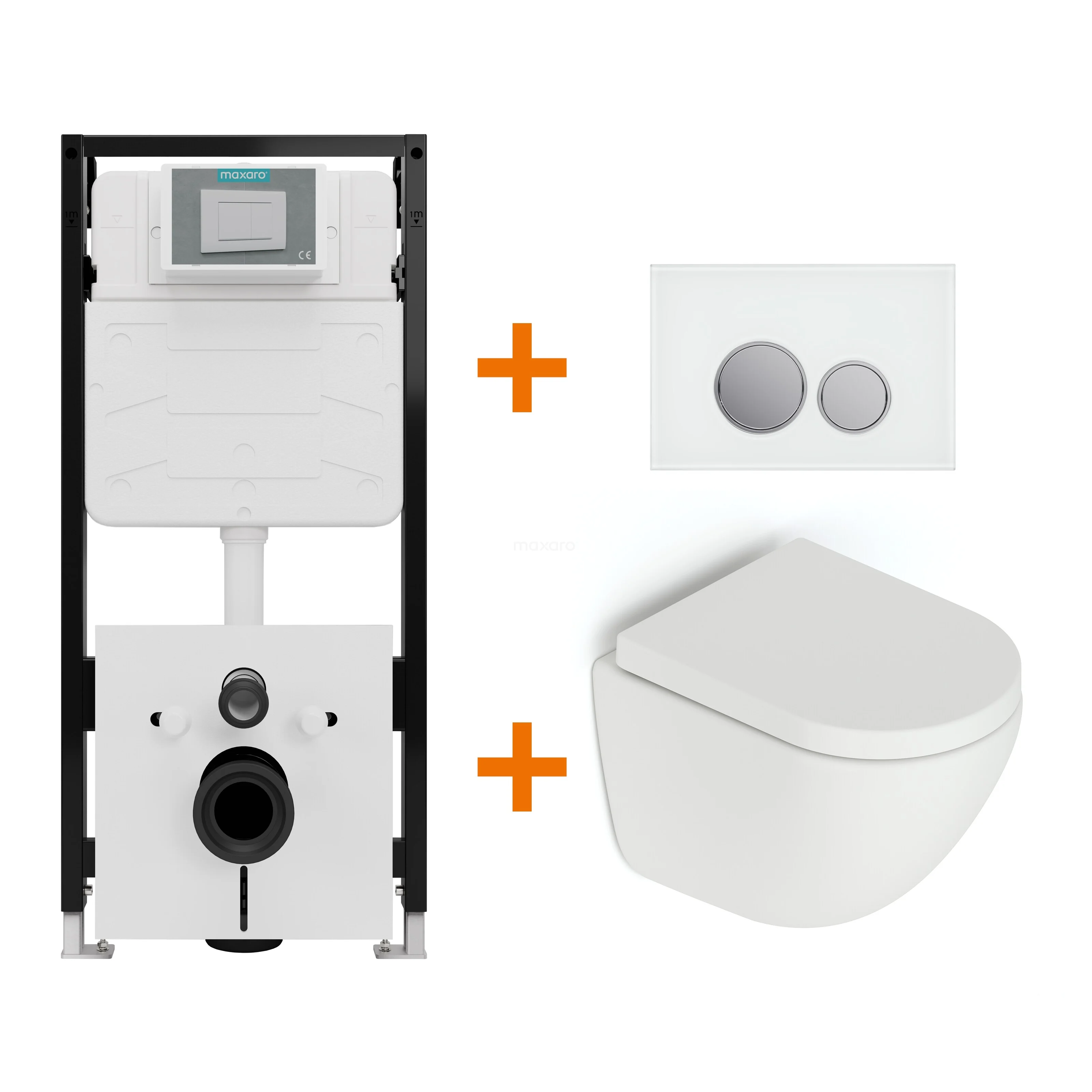 Met deze complete toiletset haal je in één keer alles in huis voor een stijlvol, functioneel en betaalbaar hangtoilet. De set bevat een mat wit Colorato hangtoilet, een softclose toiletzitting, het hoogwaardige Maxaro FLush Slim Pro-inbouwreservoir en een strak vormgegeven bedieningspaneel. Dankzij de perfecte afstemming tussen de onderdelen geniet je van optimale prestaties en comfort, zonder onnodige kosten.