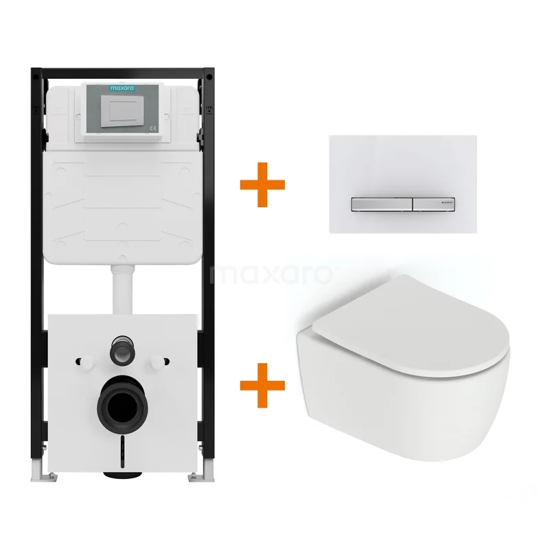 Toilet set Matte white without rim + Maxaro Flush Slim Pro concealed cistern with sound insulation