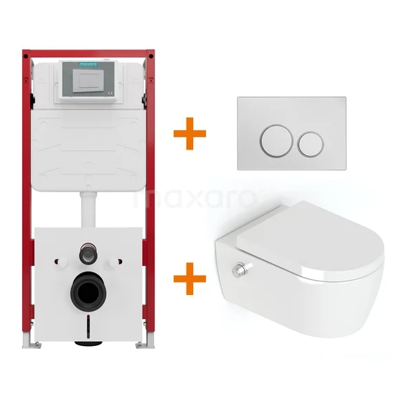 Met deze complete toiletset haal je in één keer alles in huis voor een stijlvol, functioneel en betaalbaar hangtoilet met bidetfunctie. De set bevat een hoogglans wit Doppio bidettoilet, een softclose toiletzitting, het hoogwaardige Maxaro Flush inbouwreservoir en een strak vormgegeven bedieningspaneel. Dankzij de perfecte afstemming tussen de onderdelen geniet je van optimale prestaties en comfort, zonder onnodige kosten.