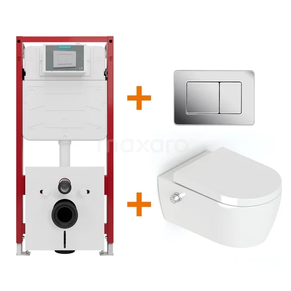 Met deze complete toiletset haal je in één keer alles in huis voor een stijlvol, functioneel en betaalbaar hangtoilet met bidetfunctie. De set bevat een hoogglans wit Doppio bidettoilet, een softclose toiletzitting, het hoogwaardige Maxaro Flush inbouwreservoir en een strak vormgegeven bedieningspaneel. Dankzij de perfecte afstemming tussen de onderdelen geniet je van optimale prestaties en comfort, zonder onnodige kosten.