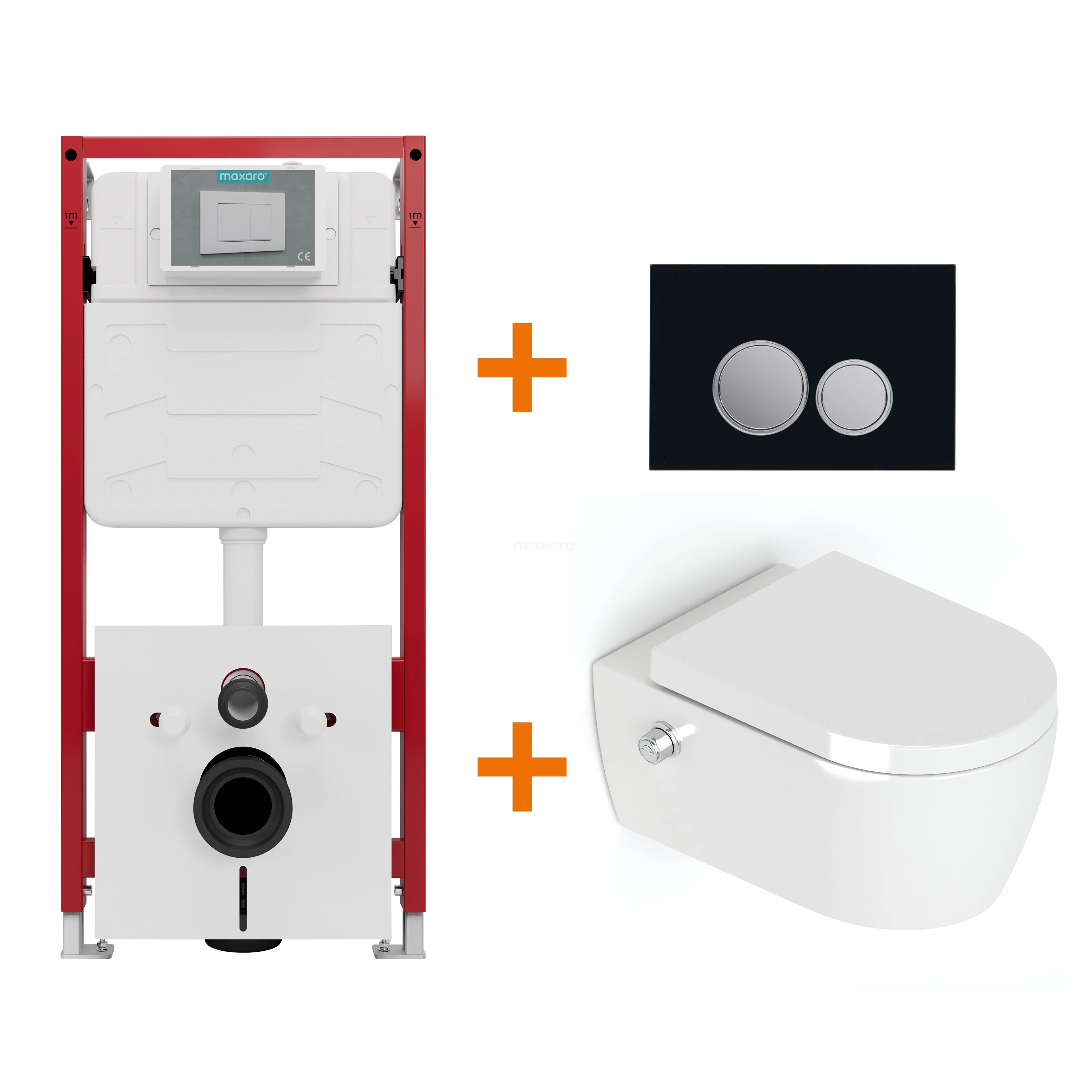 Met deze complete toiletset haal je in één keer alles in huis voor een stijlvol, functioneel en betaalbaar hangtoilet met bidetfunctie. De set bevat een hoogglans wit Doppio bidettoilet, een softclose toiletzitting, het hoogwaardige Maxaro Flush inbouwreservoir en een strak vormgegeven bedieningspaneel. Dankzij de perfecte afstemming tussen de onderdelen geniet je van optimale prestaties en comfort, zonder onnodige kosten.