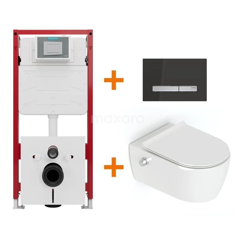 Met deze complete toiletset haal je in één keer alles in huis voor een stijlvol, functioneel en betaalbaar hangtoilet met bidetfunctie. De set bevat een hoogglans wit Doppio bidettoilet, een softclose toiletzitting, het hoogwaardige Maxaro Flush inbouwreservoir en een strak vormgegeven bedieningspaneel. Dankzij de perfecte afstemming tussen de onderdelen geniet je van optimale prestaties en comfort, zonder onnodige kosten.
