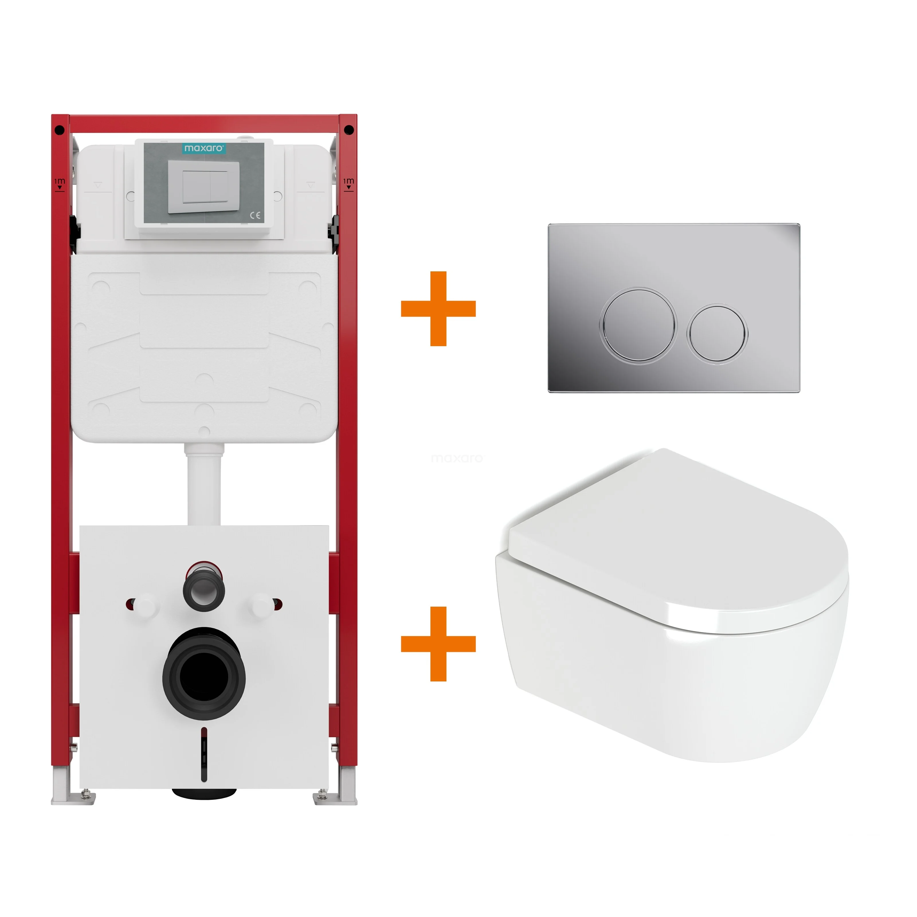 Met deze complete toiletset haal je in één keer alles in huis voor een stijlvol, functioneel en betaalbaar hangtoilet. De set bevat een hoogglans wit Classico hangtoilet, een softclose toiletzitting, het hoogwaardige Maxaro Flush-inbouwreservoir en een strak vormgegeven bedieningspaneel. Dankzij de perfecte afstemming tussen de onderdelen geniet je van optimale prestaties en comfort, zonder onnodige kosten.