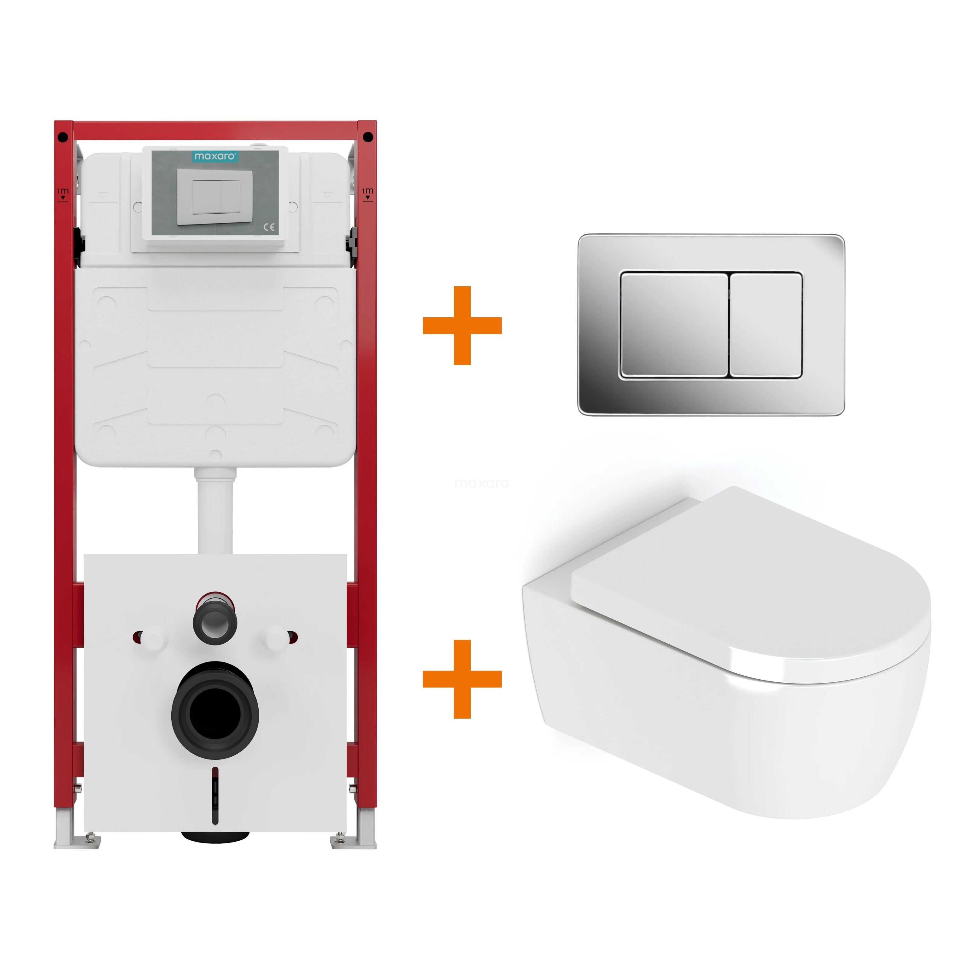 Met deze complete toiletset haal je in één keer alles in huis voor een stijlvol, functioneel en betaalbaar hangtoilet. De set bevat een hoogglans wit Classico hangtoilet, een softclose toiletzitting, het hoogwaardige Maxaro Flush-inbouwreservoir en een strak vormgegeven bedieningspaneel. Dankzij de perfecte afstemming tussen de onderdelen geniet je van optimale prestaties en comfort, zonder onnodige kosten.