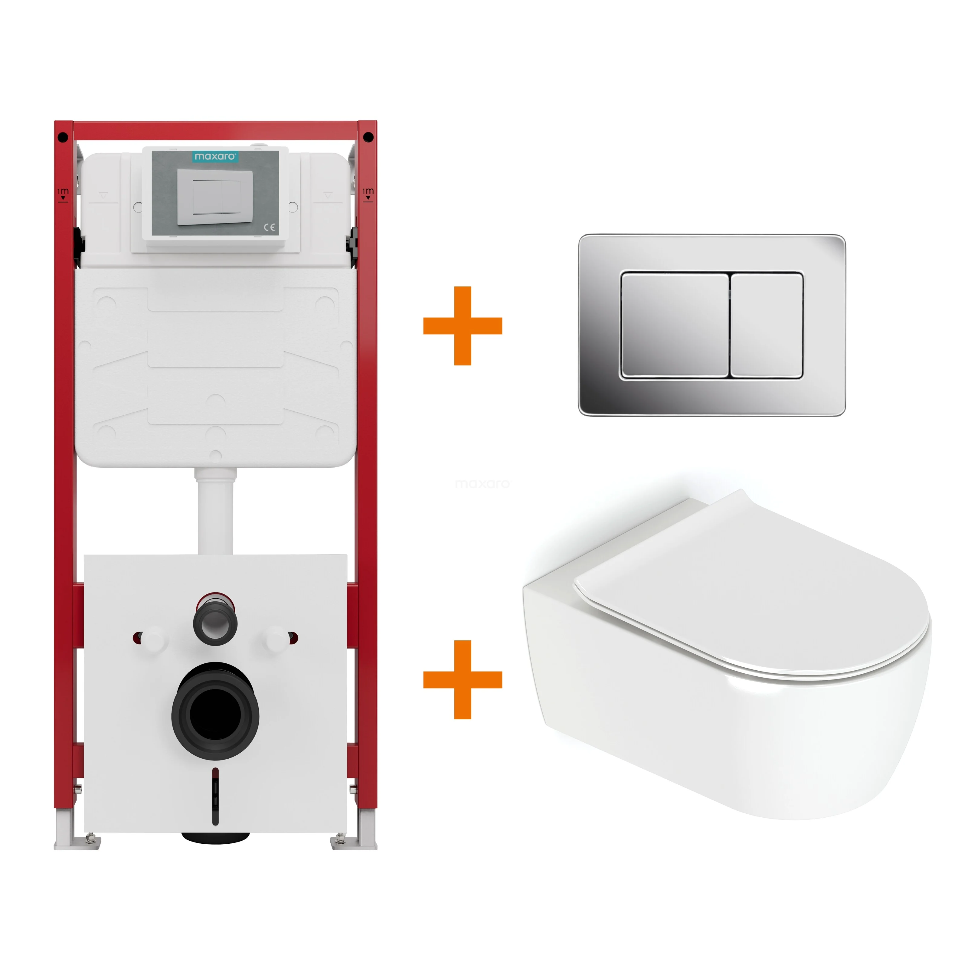 Met deze complete toiletset haal je in één keer alles in huis voor een stijlvol, functioneel en betaalbaar hangtoilet. De set bevat een hoogglans wit Classico hangtoilet, een softclose toiletzitting, het hoogwaardige Maxaro Flush-inbouwreservoir en een strak vormgegeven bedieningspaneel. Dankzij de perfecte afstemming tussen de onderdelen geniet je van optimale prestaties en comfort, zonder onnodige kosten.