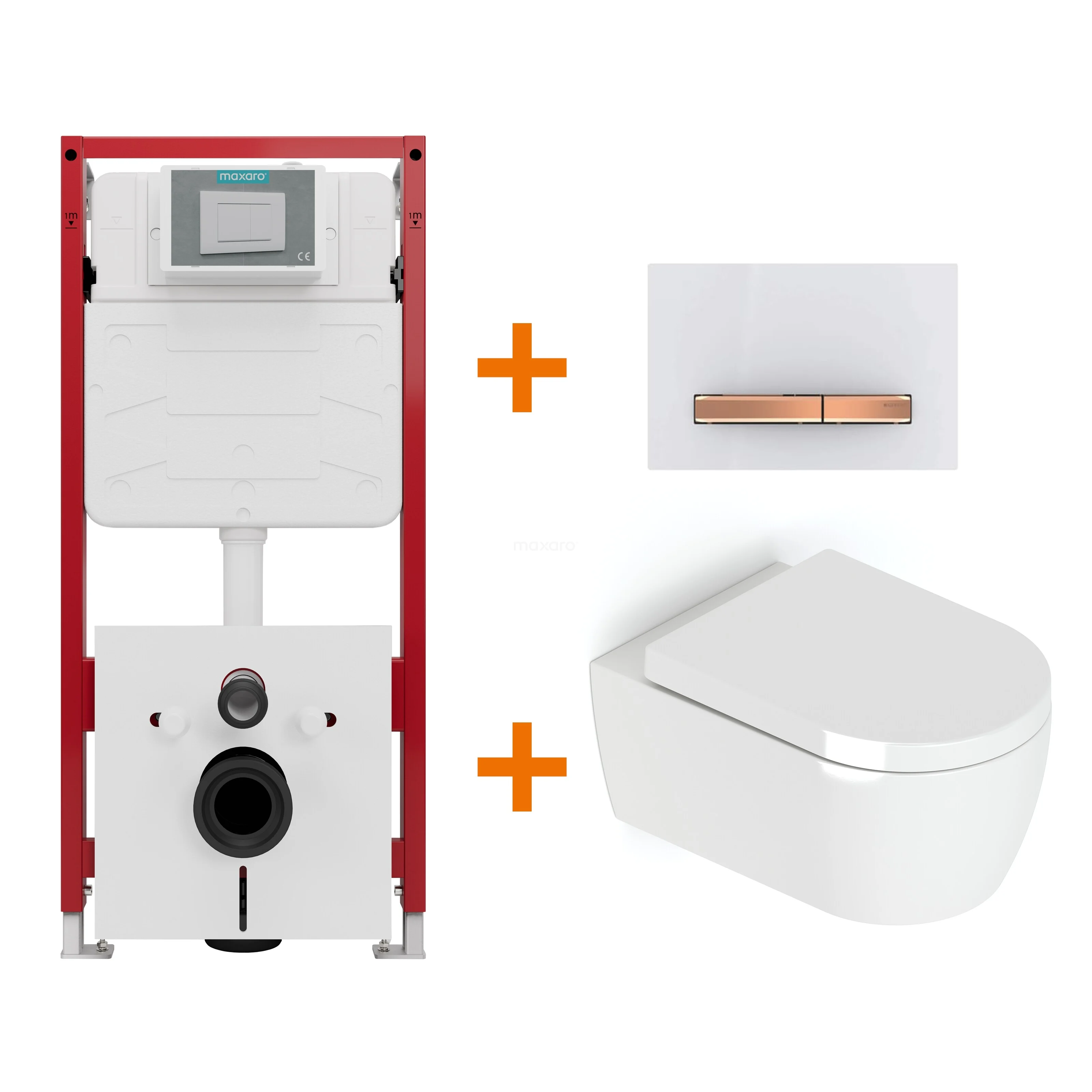 Met deze complete toiletset haal je in één keer alles in huis voor een stijlvol, functioneel en betaalbaar hangtoilet. De set bevat een hoogglans wit Classico hangtoilet, een softclose toiletzitting, het hoogwaardige Maxaro Flush-inbouwreservoir en een strak vormgegeven bedieningspaneel. Dankzij de perfecte afstemming tussen de onderdelen geniet je van optimale prestaties en comfort, zonder onnodige kosten.