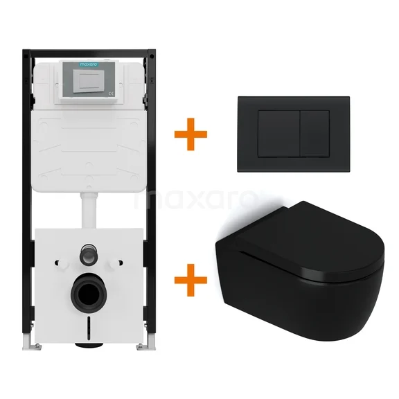 Met deze complete toiletset haal je in één keer alles in huis voor een stijlvol, functioneel en betaalbaar hangtoilet. De set bevat een mat zwart Senza hangtoilet, een softclose toiletzitting, het hoogwaardige Maxaro Flush Pro-inbouwreservoir en een strak vormgegeven bedieningspaneel. Dankzij de perfecte afstemming tussen de onderdelen geniet je van optimale prestaties en comfort, zonder onnodige kosten.