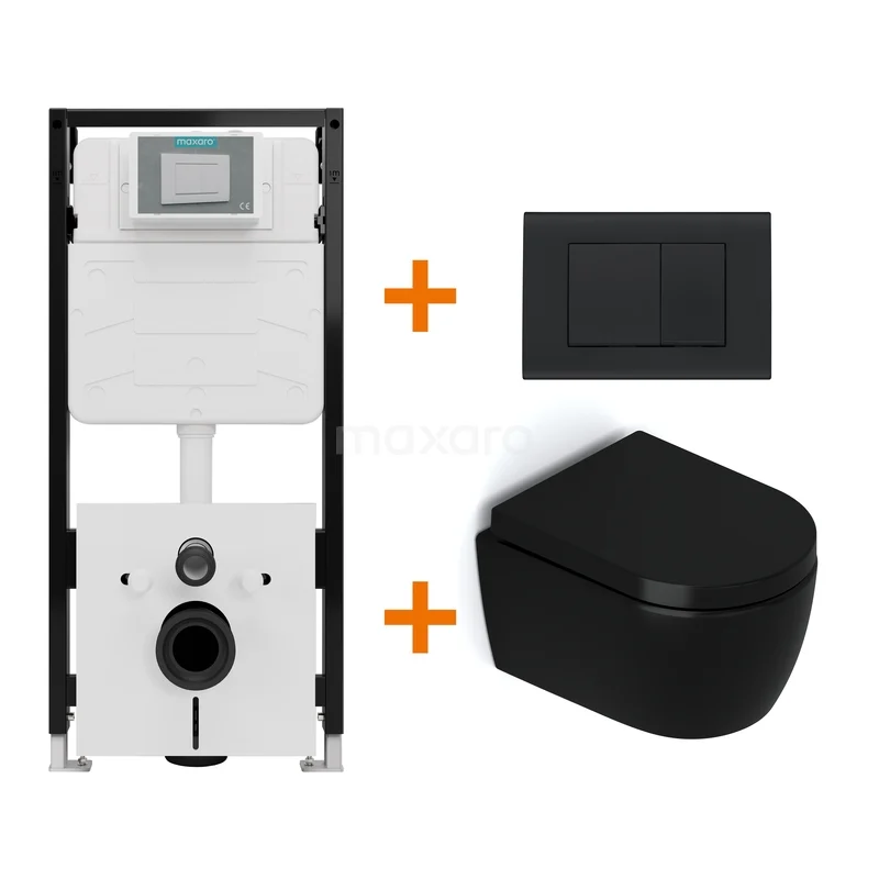 Toilet sets Matte black without rim + Maxaro Flush Pro concealed cistern with sound insulation