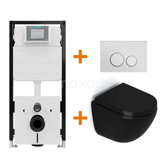 Toilet sets Matte black without rim + Maxaro Flush Pro concealed cistern with sound insulation