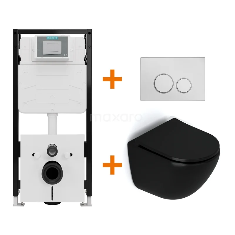 Toilet sets Matte black without rim + Maxaro Flush Pro concealed cistern with sound insulation