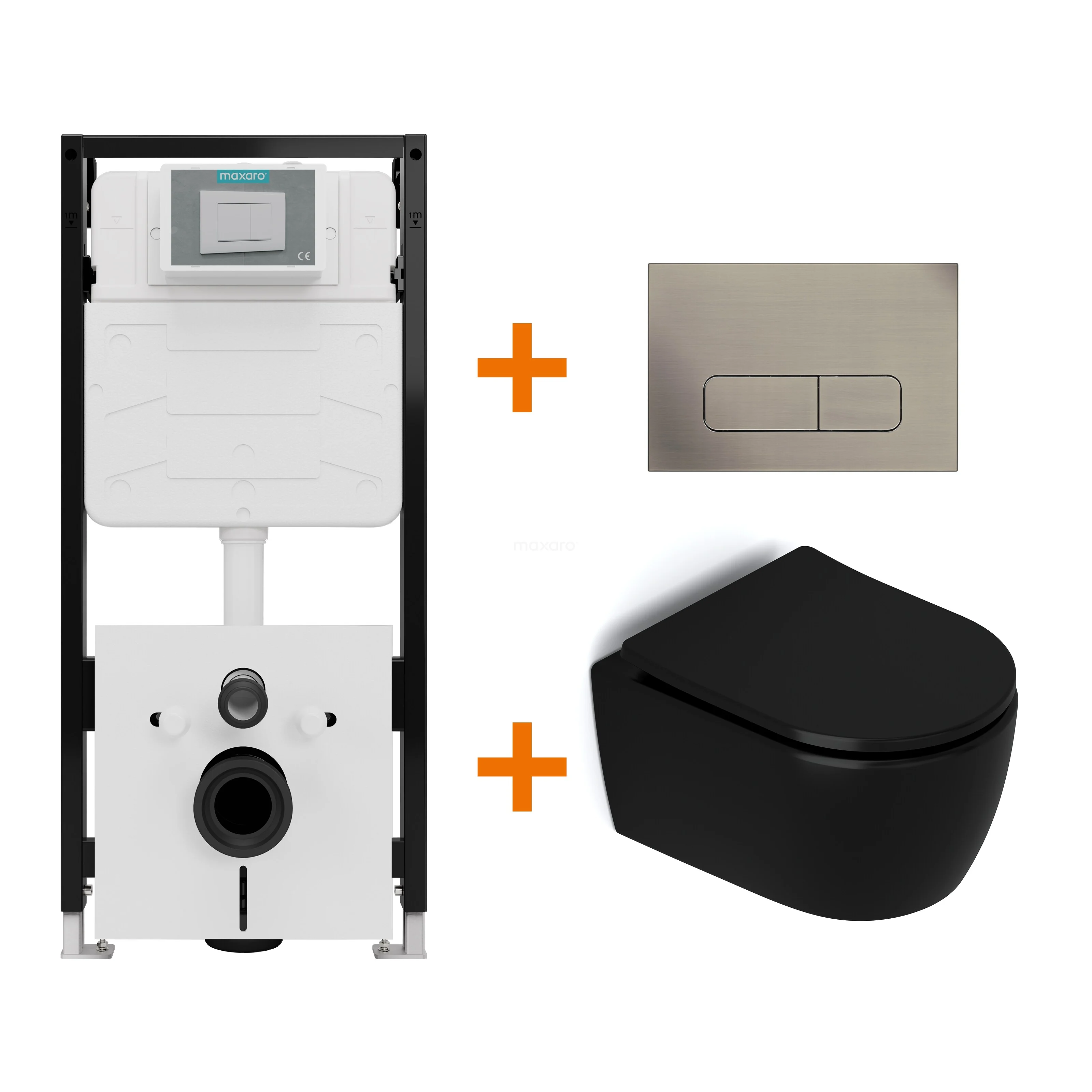 Toilet sets Matte black without rim + Maxaro Flush Pro concealed cistern with sound insulation