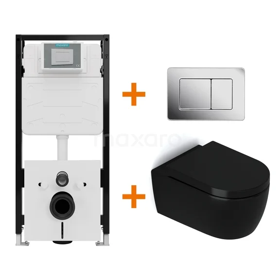 Toilet sets Matte black without rim + Maxaro Flush Pro concealed cistern with sound insulation
