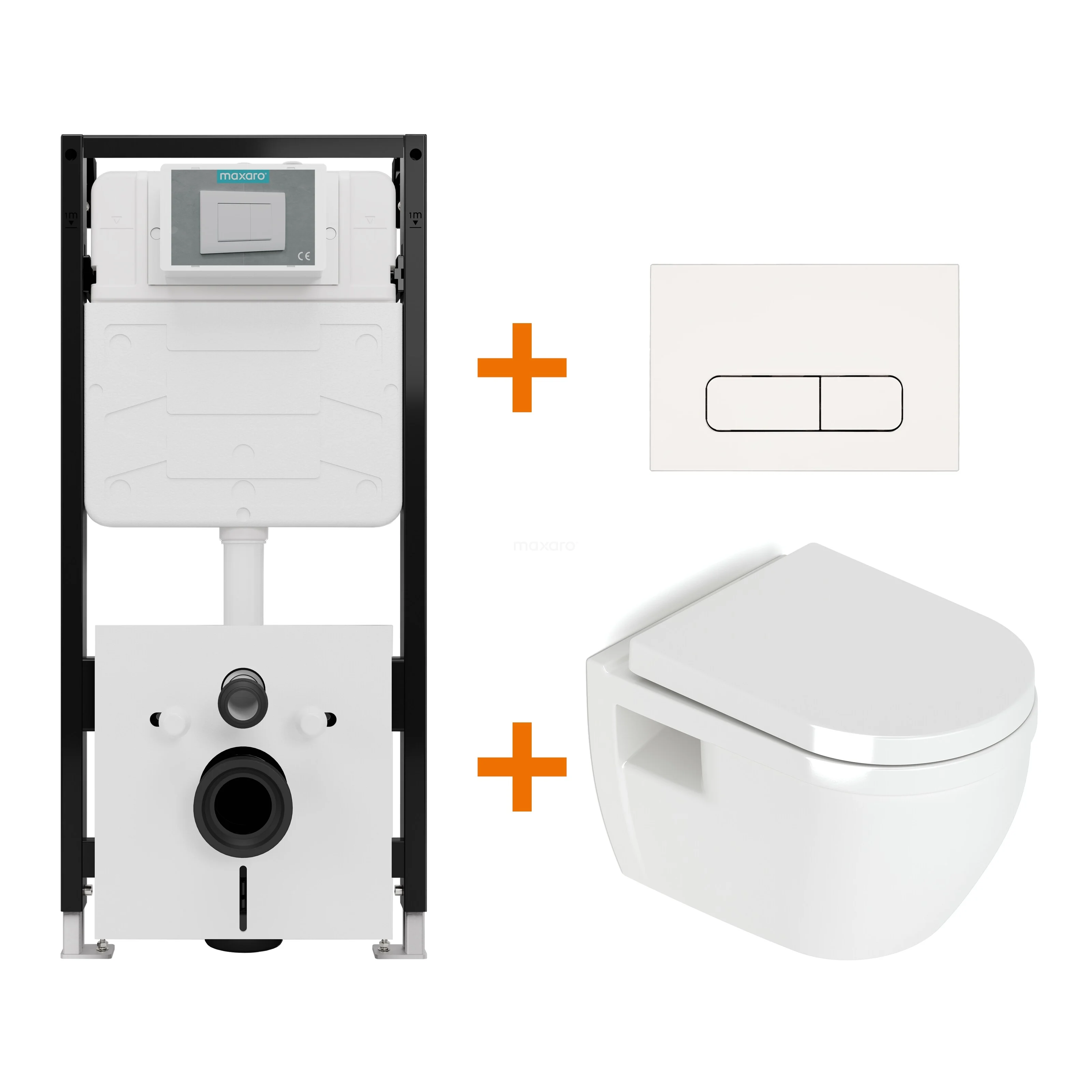 Toilet set High Gloss white without Rim + Maxaro Flush Pro built-in cistern with sound insulation
