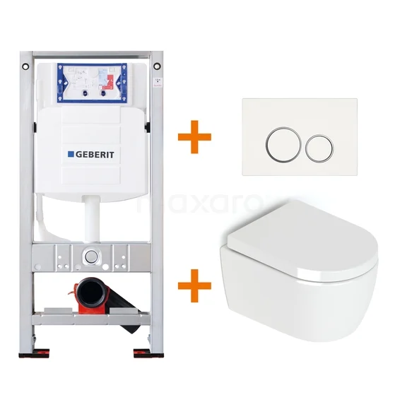 Toilet set High Gloss white without Rim + Maxaro Flush Slim Pro built-in cistern with sound insulation