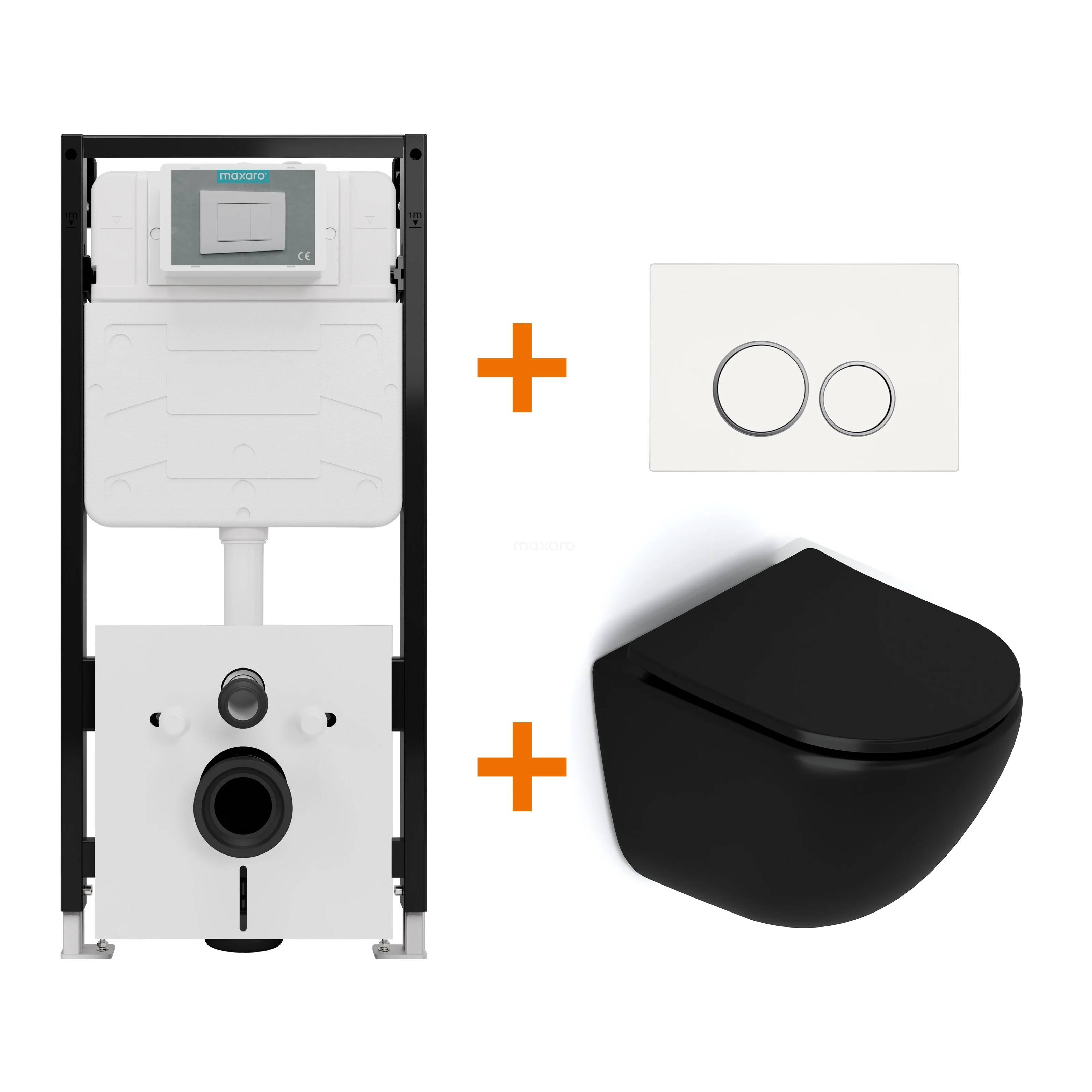 Toilet set Matt black without rim + Maxaro Flush Pro built-in cistern with sound insulation