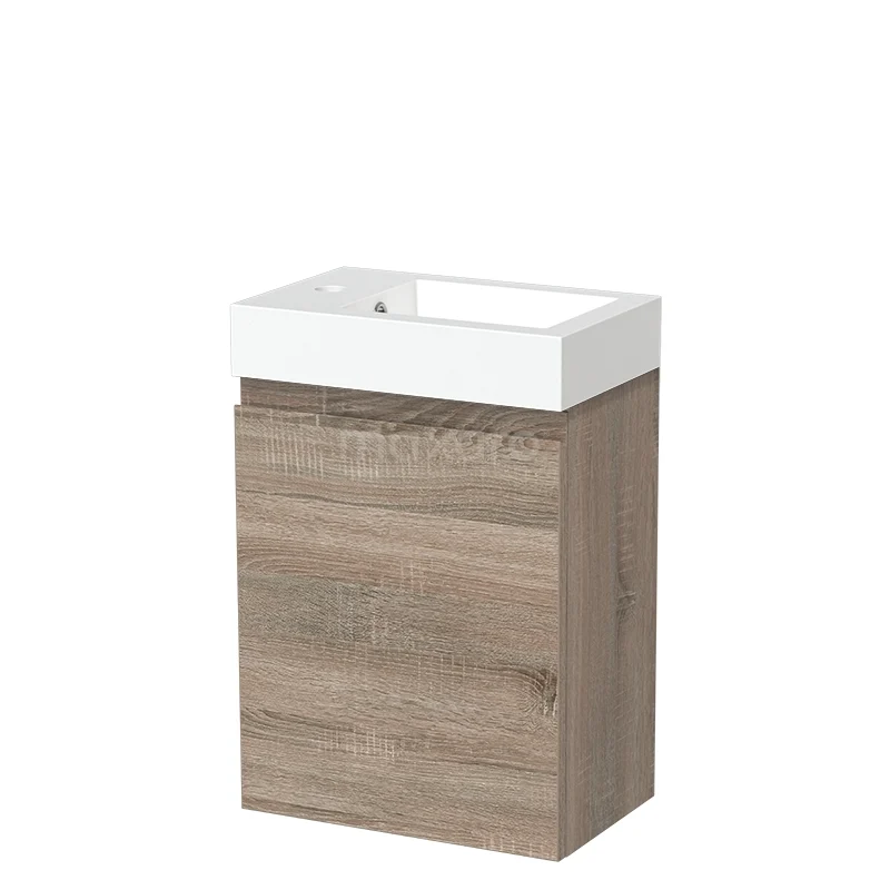 Stylish design Thanks to its beautiful design, the unit is an eye-catcher in the toilet area. The base cabinet has an Oak finish. This beautiful oak look creates a warm atmosphere in your bathroom interior. Furthermore, the unit is equipped with a flat front for a timeless touch. You will need to joint the handle yourself. It is available in different colours and shapes.