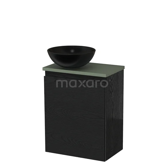 Toilet unit with countertop wash basin | 41 cm Black oak Handleless front Matte black Ceramic wash basin Sage green worktop