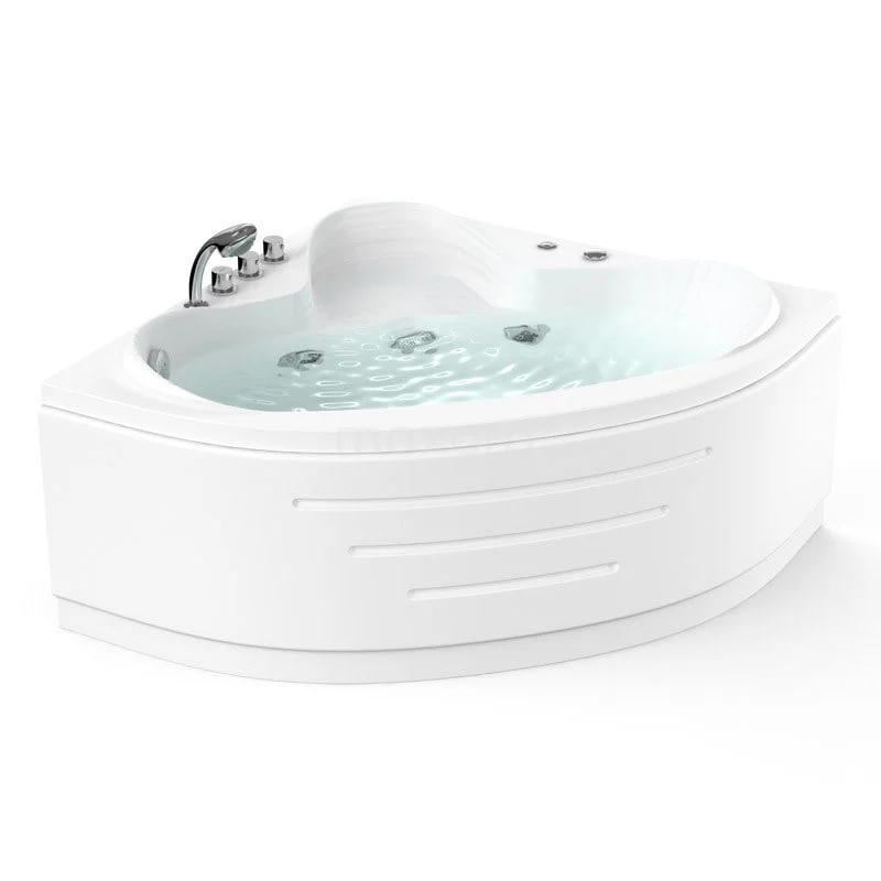 Unique design The shiny whirlpool has a quarter-round shape and is finished with chrome elements. This design is timeless and space-saving, allowing you to make optimal use of the space in your bathroom Furthermore, the bath has a unique touch thanks to the filler tap with shell design. The straight lines on the inside and outside of the Bath emphasise this look. This one also features a special seating area and a special structure on the bottom for extra grip.