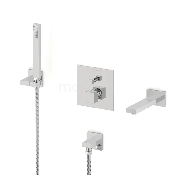 Cubic Inbouw badkranenset | Chroom Eéngreeps mengkraan met handdouche 1 stand
