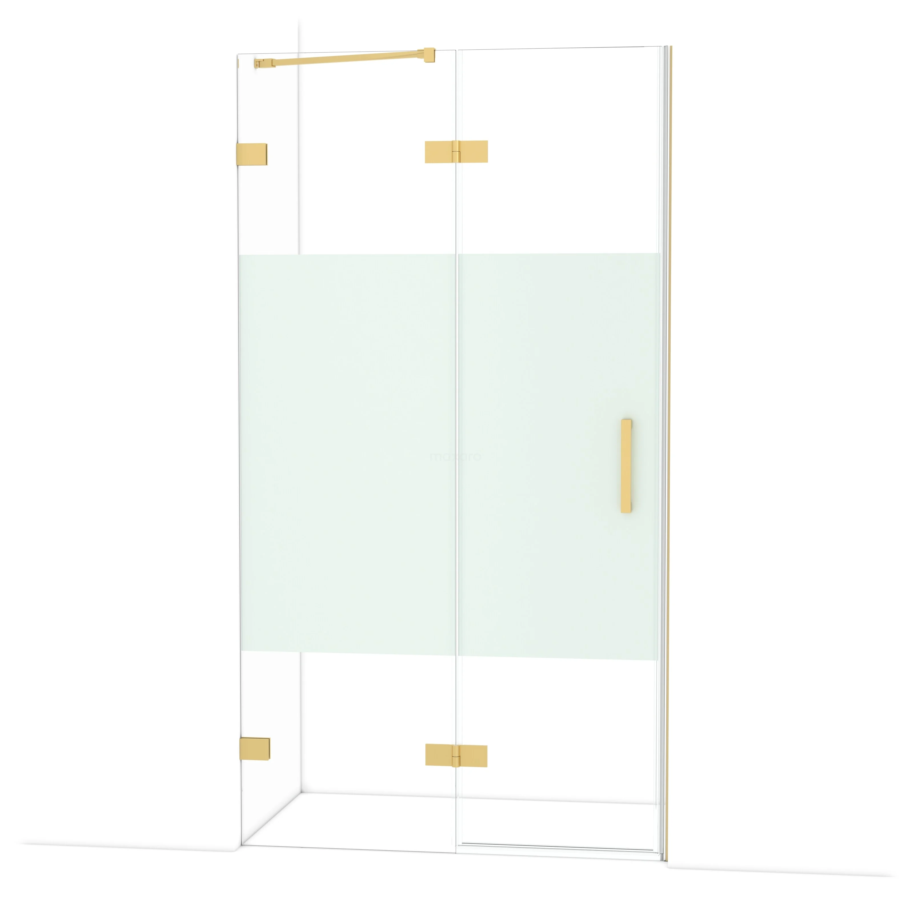 De Diamond-draaideur van 110 cm is ideaal om jouw douchenis af te sluiten. Dit exemplaar heeft een luxe design van goud en is voorzien van hoogwaardige scharnieren, tweepuntsbevestiging en een verticaal handvat. Het helder glas met matte strook zorgt voor meer privacy. Door de verstelbaarheid maak je de douchedeur gemakkelijk passend. De totale breedte is verstelbaar van 109,7 tot en met 110 cm.