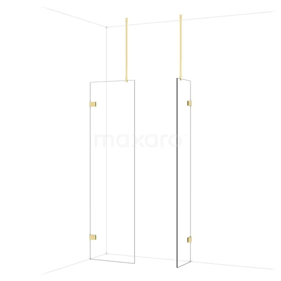 Diamond Inloopdouche | 60x40 cm Glanzend lichtgoud Helder glas 2 vaste wanden