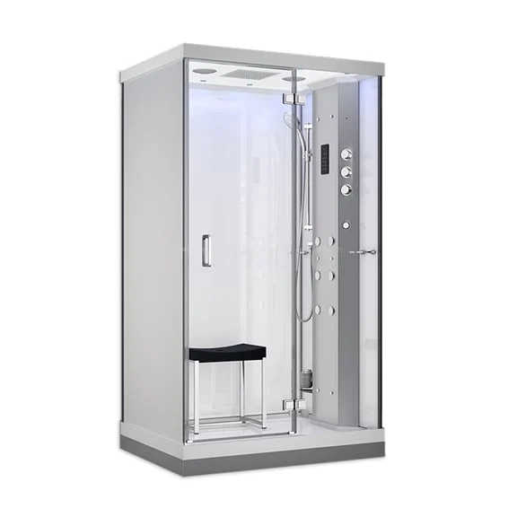 De stoomcabine is uitgerust met een afvoergoot onderaan de deur, zodat waterdruppels niet op de grond vallen.