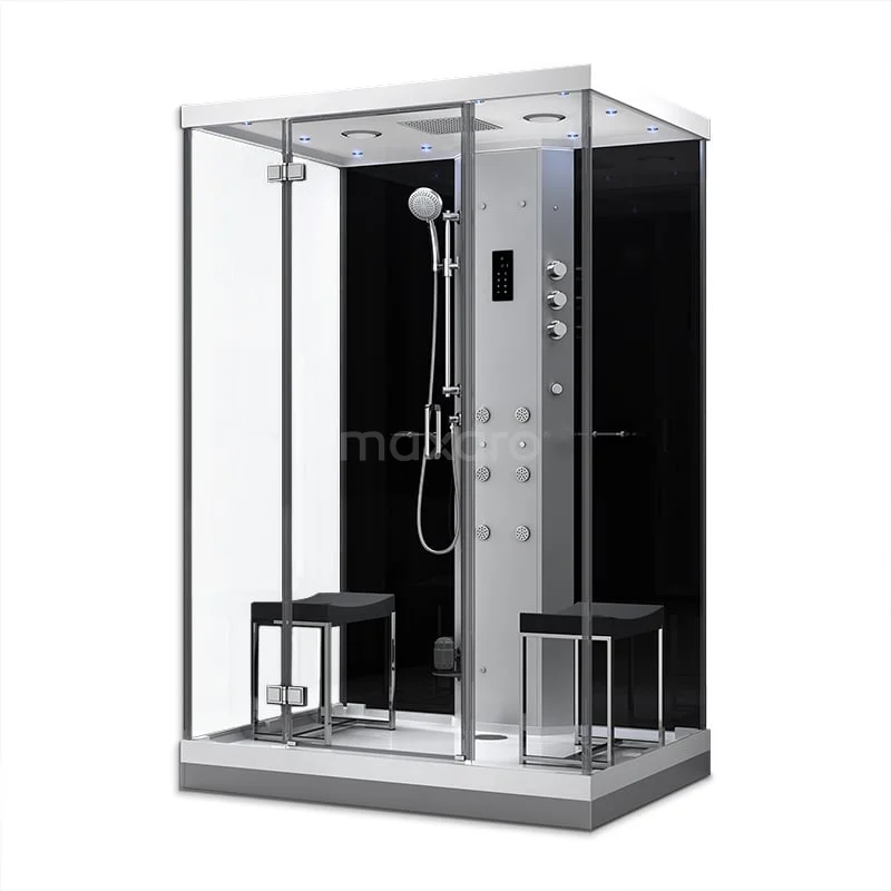 Lusso 2 Persoons Stoomcabine | 140x100 cm Zwart glas Draaideur Rechthoek