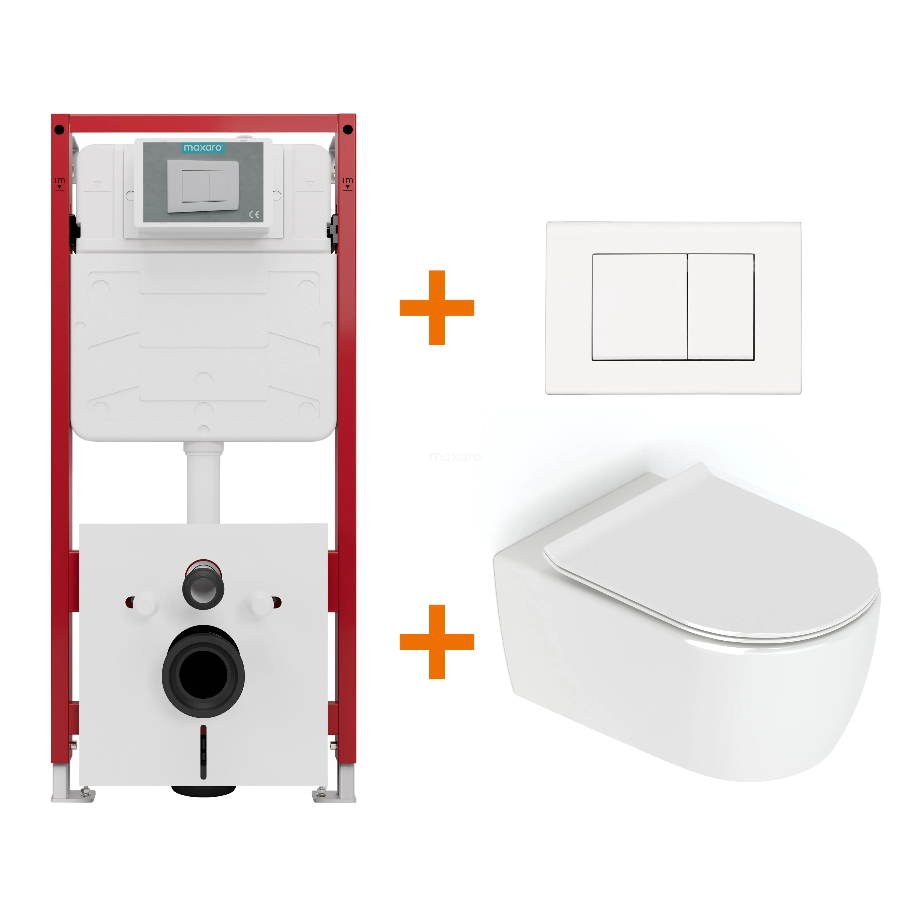 Toiletset Hoogglans wit zonder Spoelrand + Maxaro Flush inbouwreservoir
