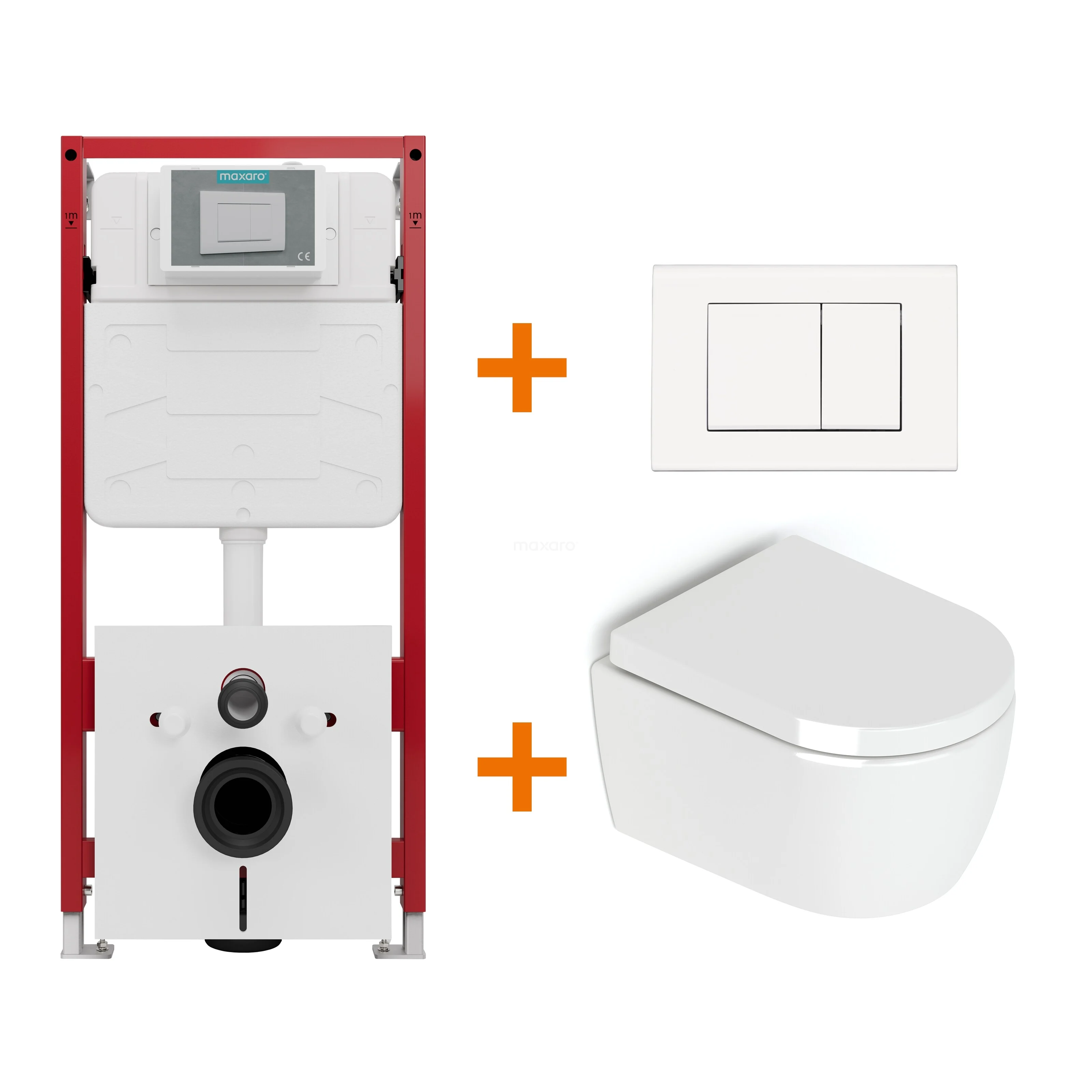 Toiletset Hoogglans wit zonder Spoelrand + Maxaro Flush inbouwreservoir