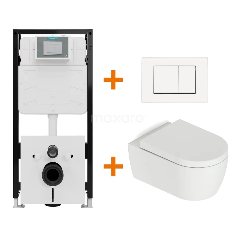 Toiletset Mat wit met Spoelrand + Maxaro Flush Pro inbouwreservoir met geluidsisolatie