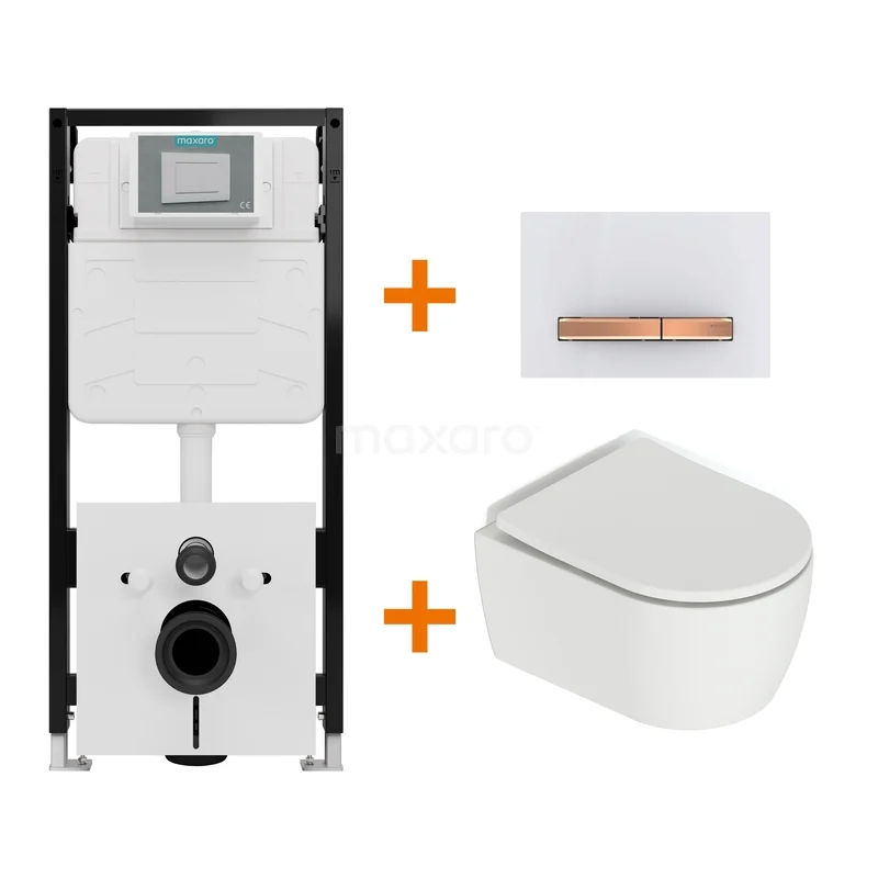 Toiletset Mat wit met Spoelrand + Maxaro Flush Slim Pro inbouwreservoir met geluidsisolatie