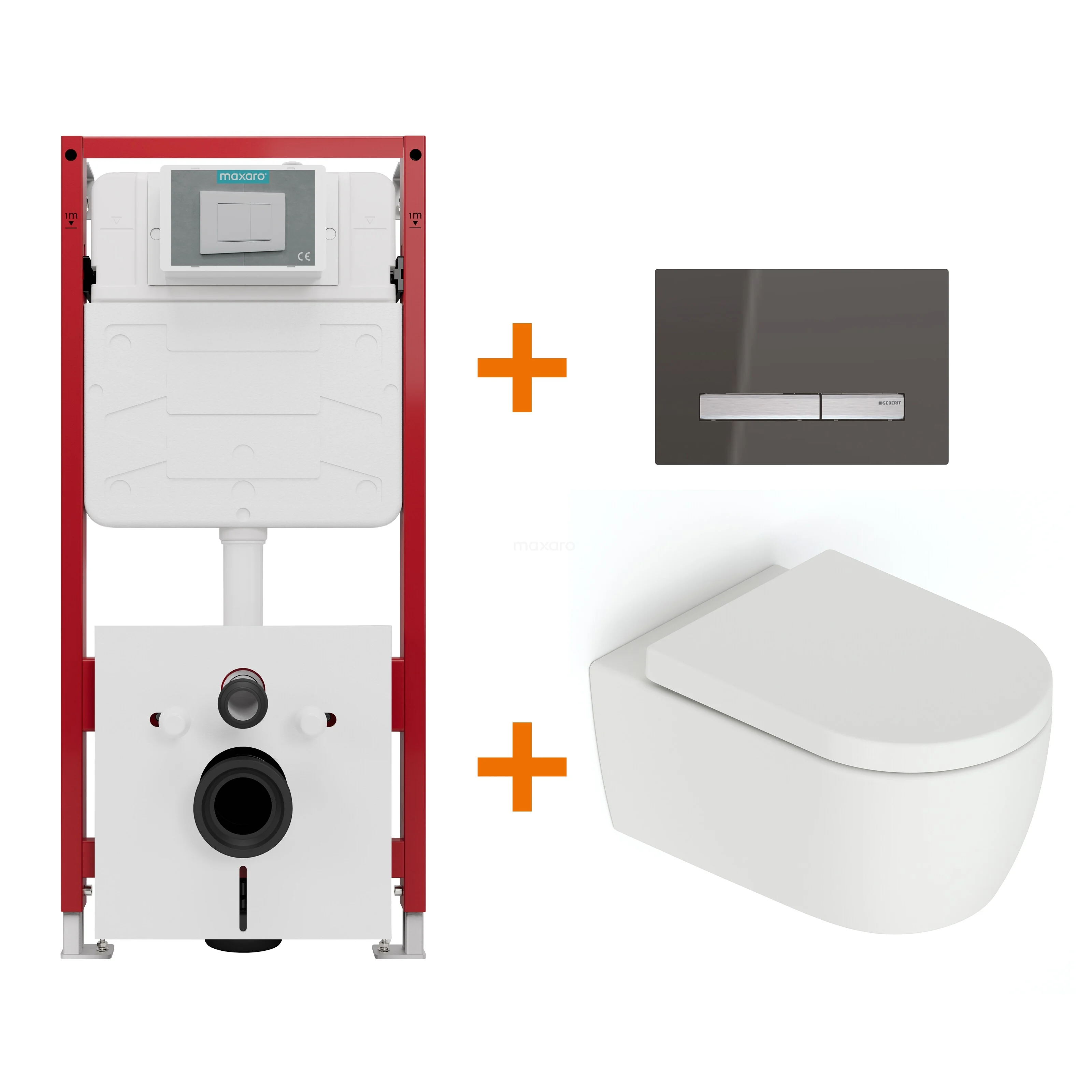 Toiletset Mat wit zonder Spoelrand + Maxaro Flush inbouwreservoir