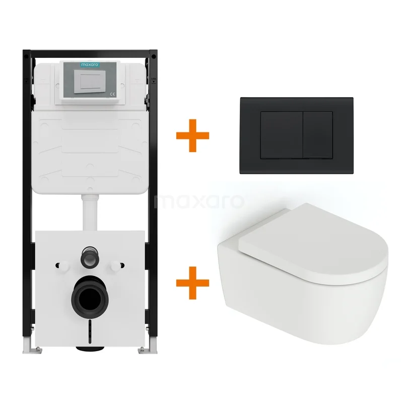 Toiletset Mat wit zonder Spoelrand + Maxaro Flush Slim Pro inbouwreservoir met geluidsisolatie