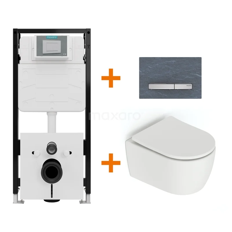 Toiletset Mat wit zonder Spoelrand + Maxaro Flush Slim Pro inbouwreservoir met geluidsisolatie