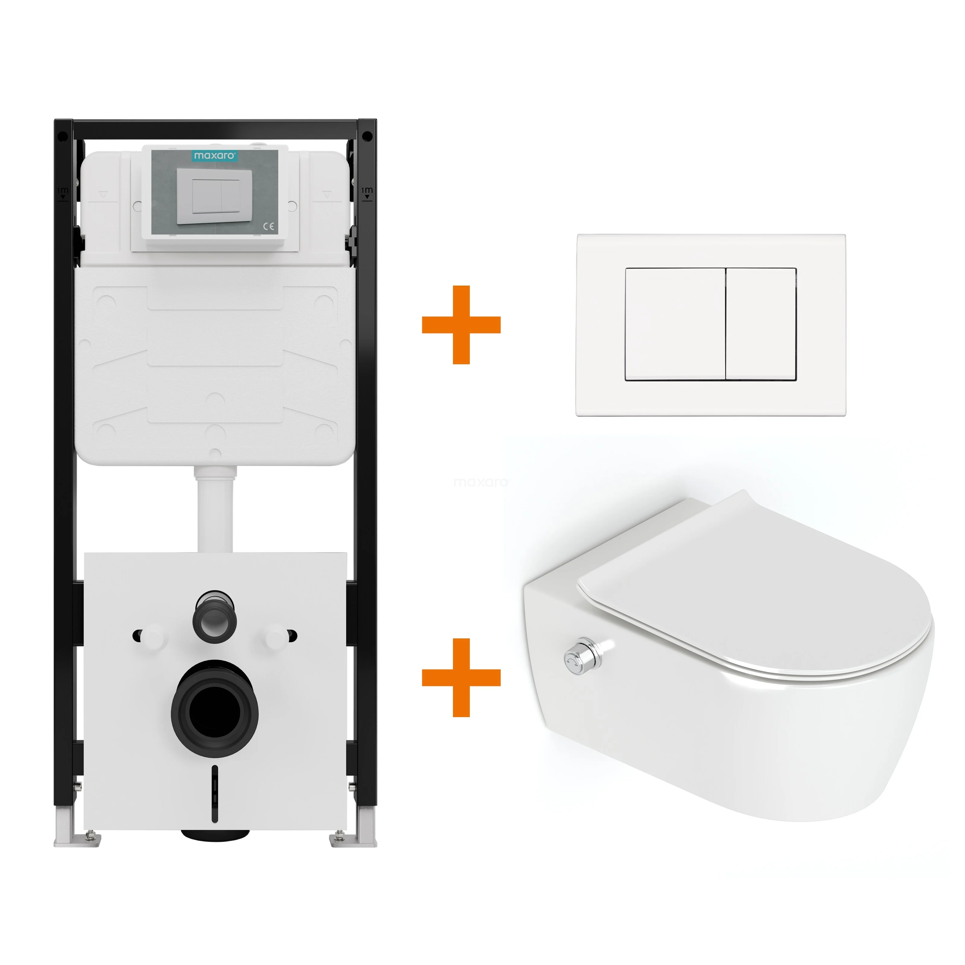 Toiletset Hoogglans wit zonder Spoelrand + Maxaro Flush Pro inbouwreservoir met geluidsisolatie